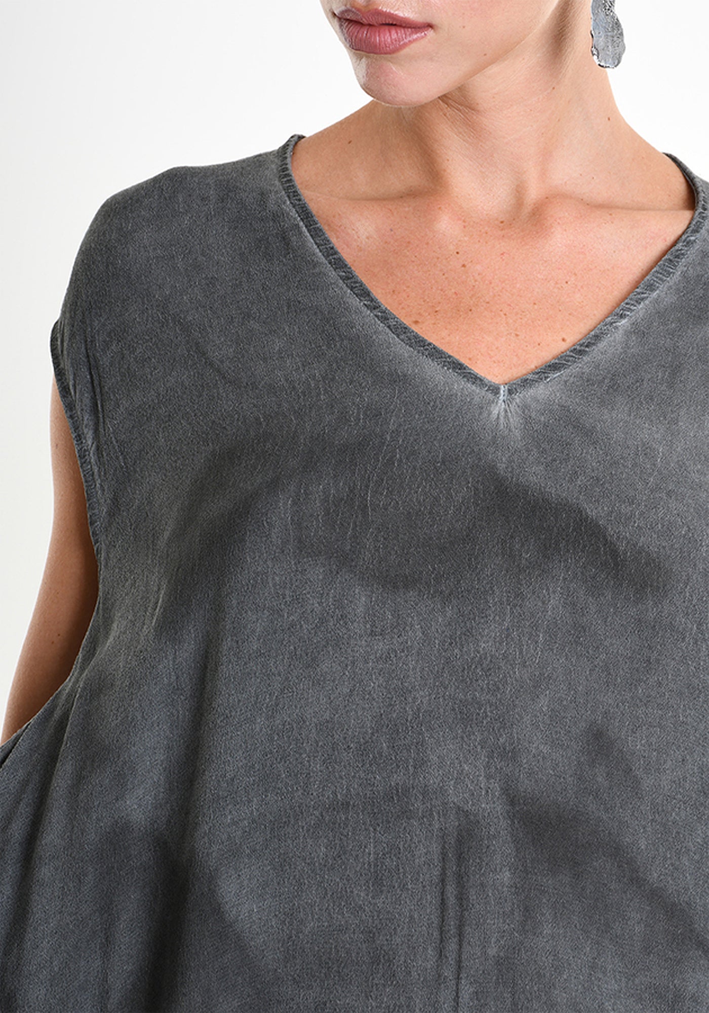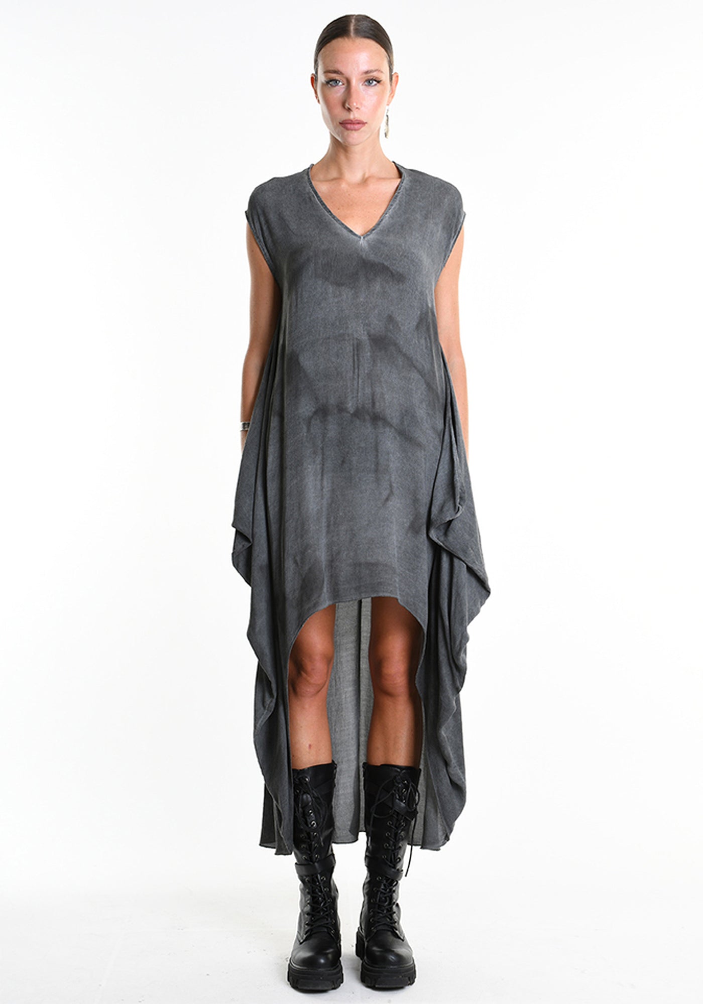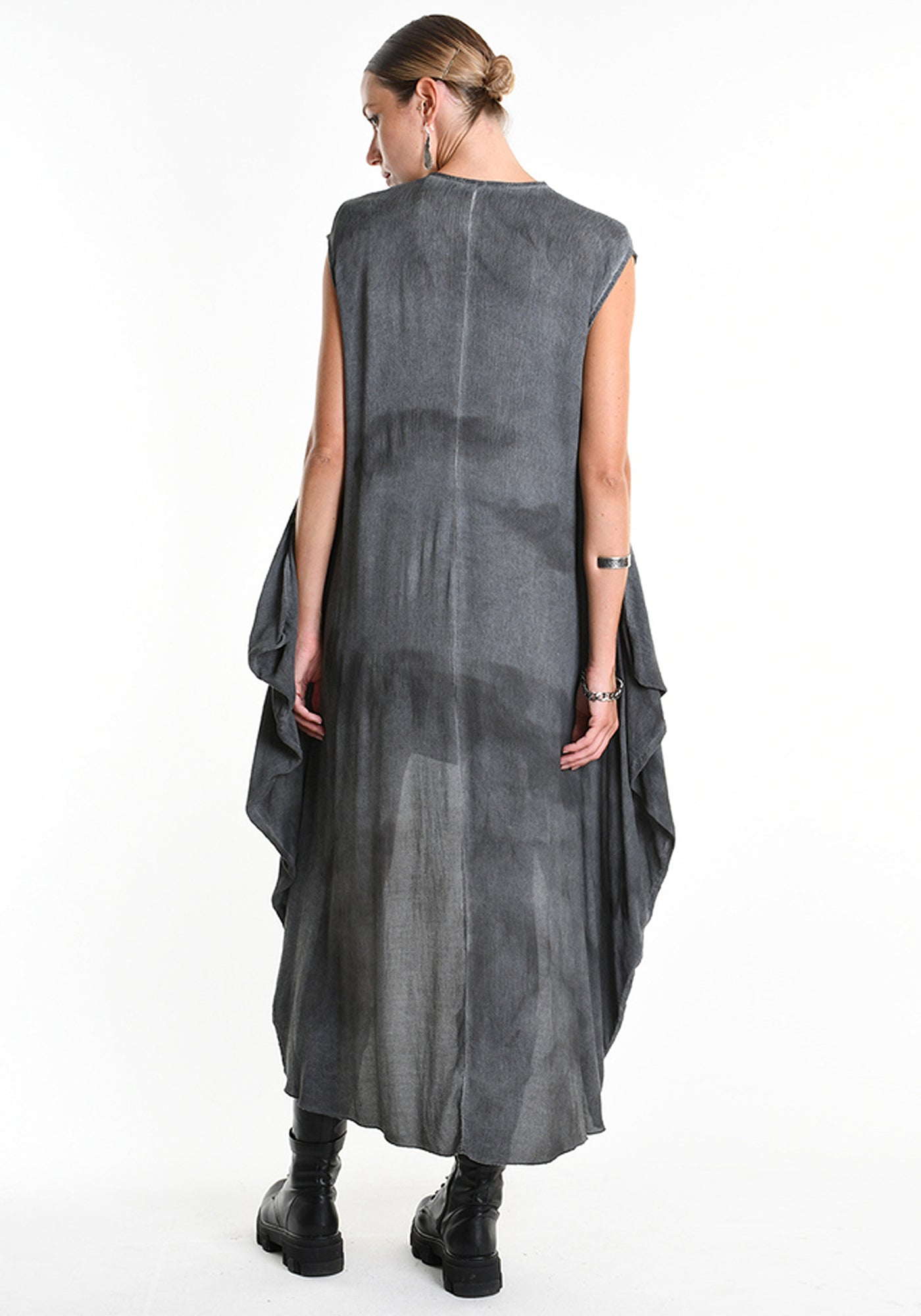 The Asymmetric Sleeveless Maxi Dress from Italy-based La Haine features a flowing silhouette with an asymmetric hem. Perfect for those who appreciate elevated, sculptural design, the overdyed finish and asymmetrical shape create striking movement and dramatic presence.