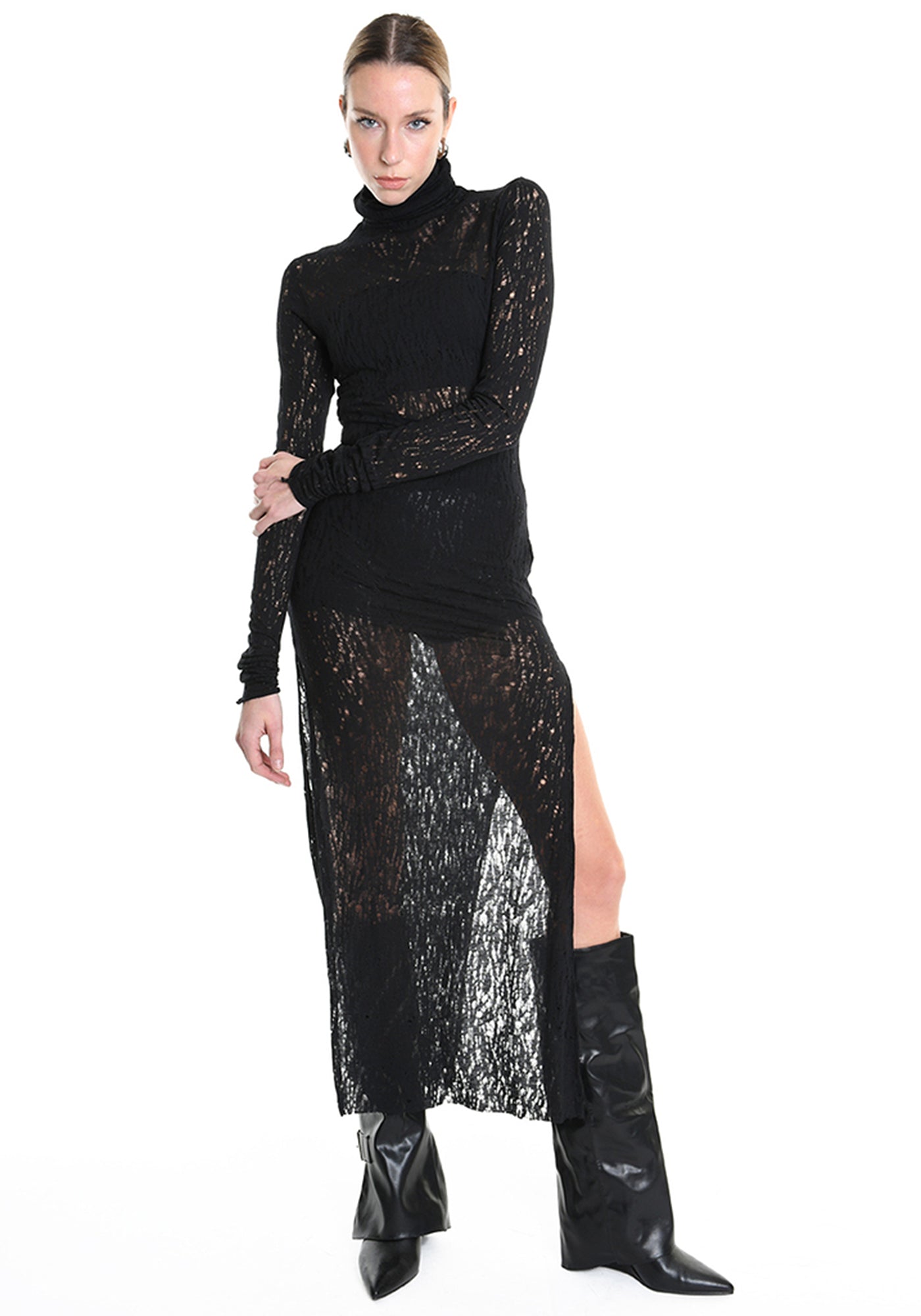 The Distressed Wool Blend Maxi Dress from Italy-based La Haine is designed for those who embrace elevated silhouettes with edgy detail. Perfect for everyday wear that also brings refined intrigue, its fitted stretch, turtleneck, and distressed texture create striking movement and dimension. Pair over a fitted dress and statement accessories to highlight its elongated, bold silhouette and contemporary, commanding presence.