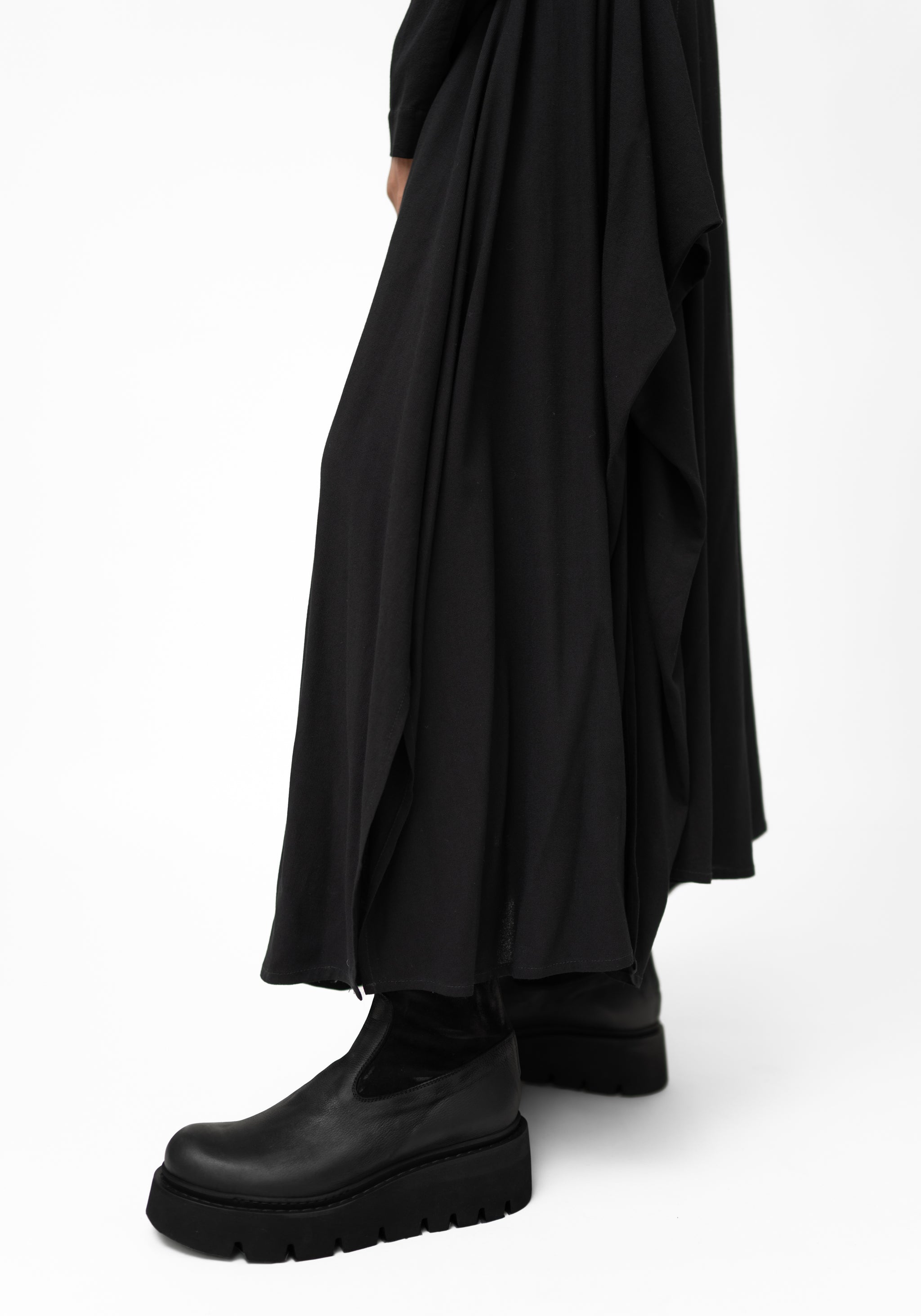 Showed styled over Amaba Asymmetric Drape Side Wool Blend Maxi Dress. See final image for reference.