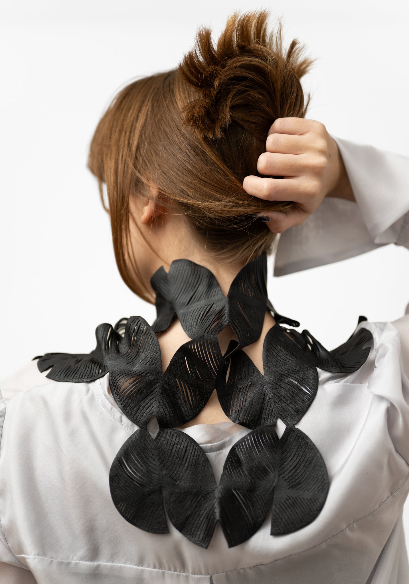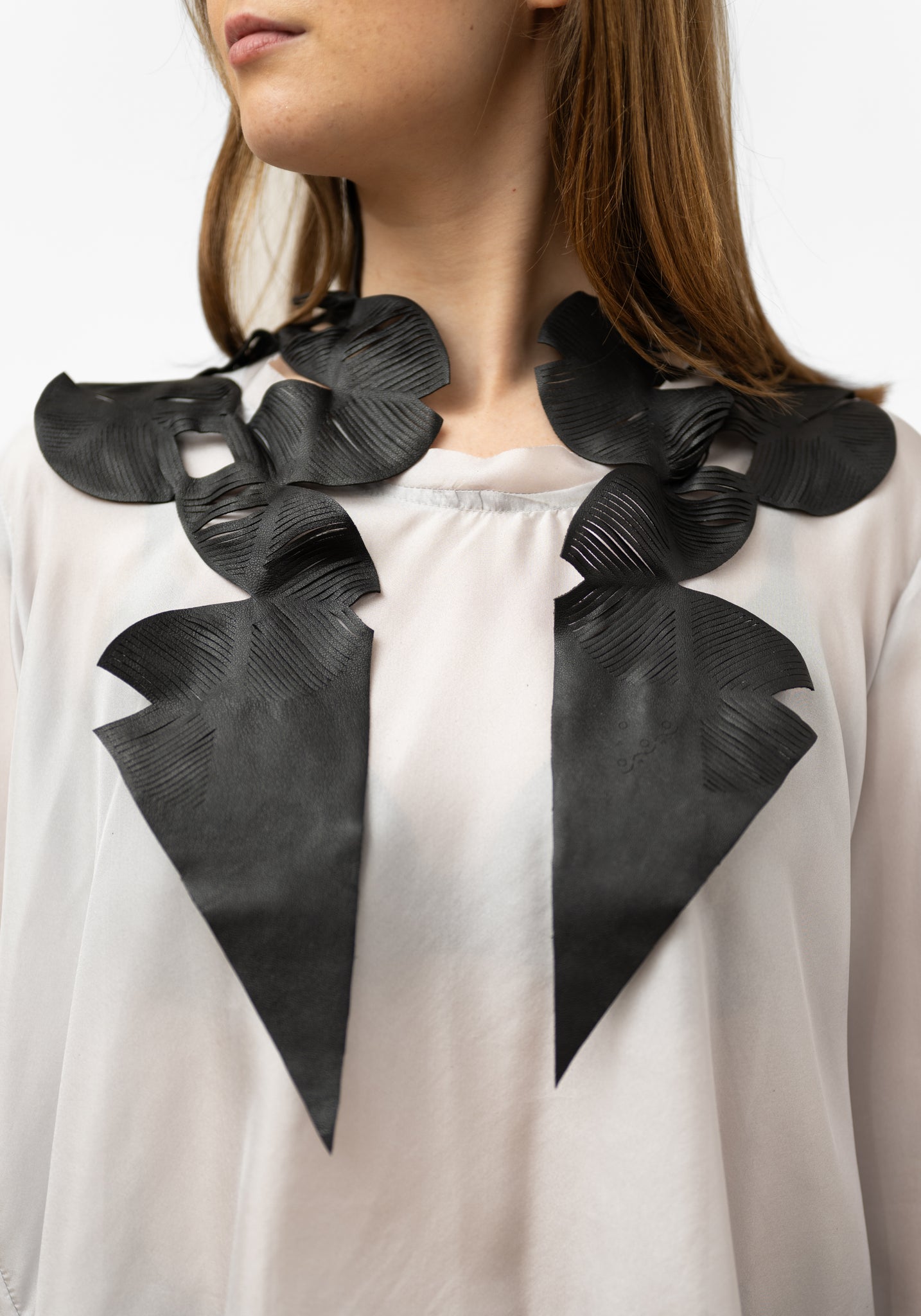 The Cottonwood Laser Cut Leather Bandana from Mexico-based OROPOPO is crafted in supple leather with precise laser-cut detailing. Designed for those who embrace distinctive, statement accessories, it can be worn as a neck scarf, headband, or tied to a bag to add a sculptural, textural element to any outfit.