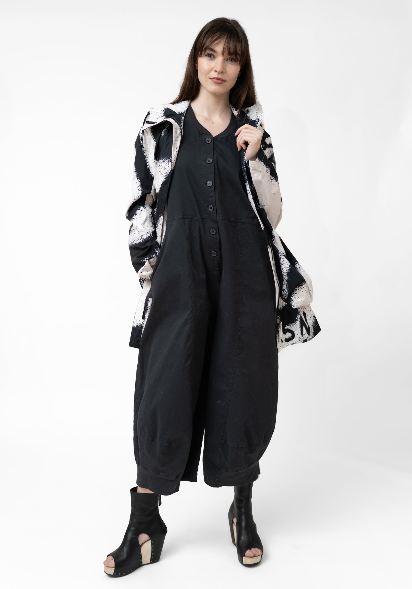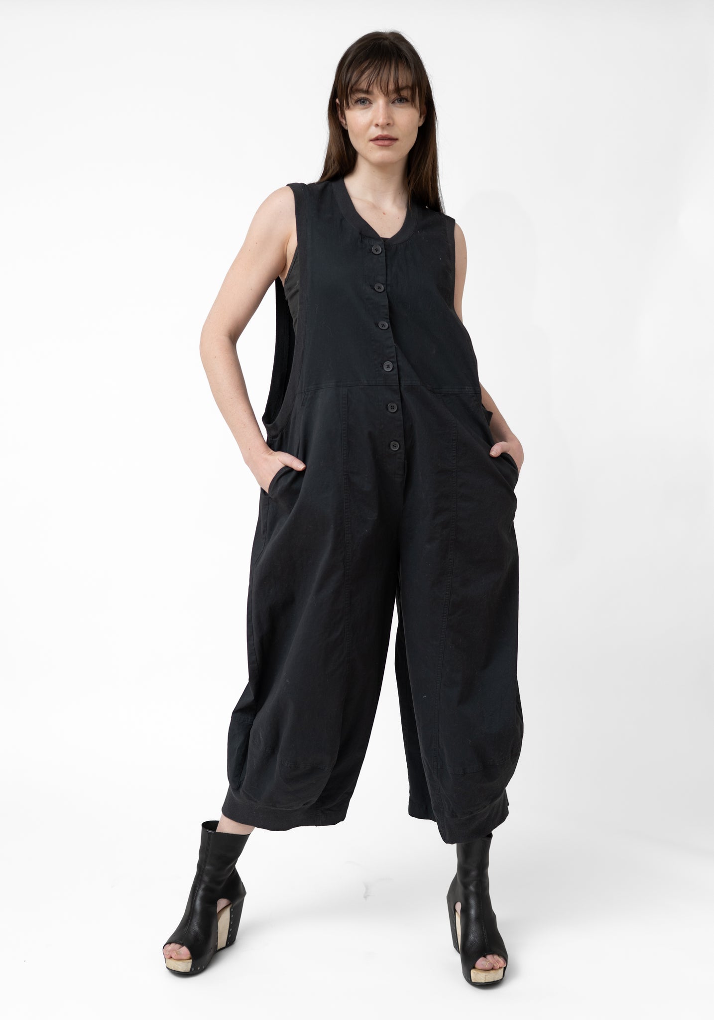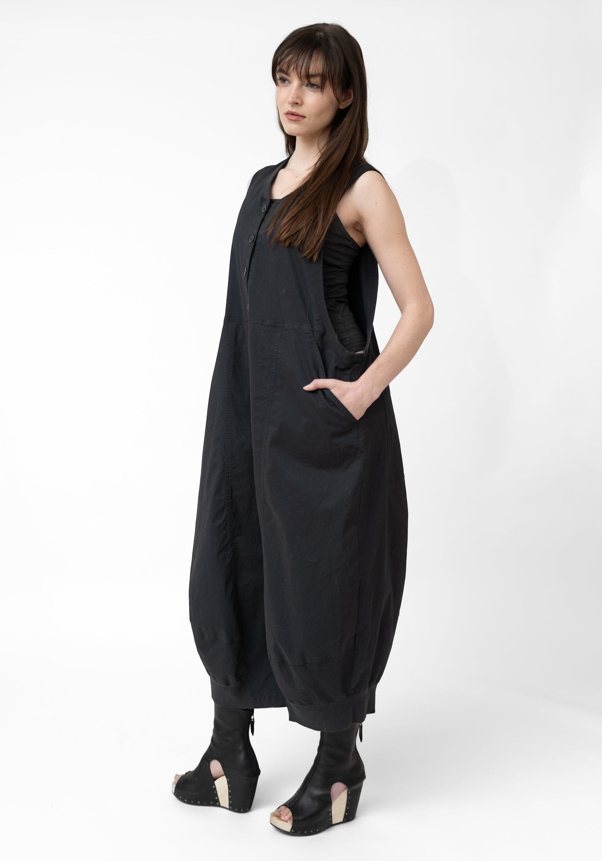 The Cropped Full Leg Sleeveless Jumpsuit from Germany-based Rundholz Black Label embodies the brand’s unconventional tailoring with a balloon silhouette and open arm construction. Designed for those drawn to expressive pieces, wear it with fitted layers underneath to emphasize its volume and distinctive shape.