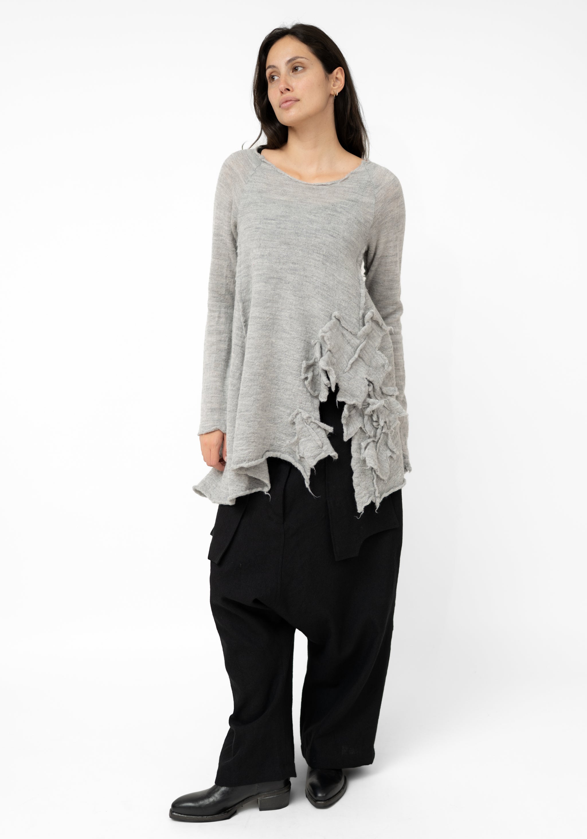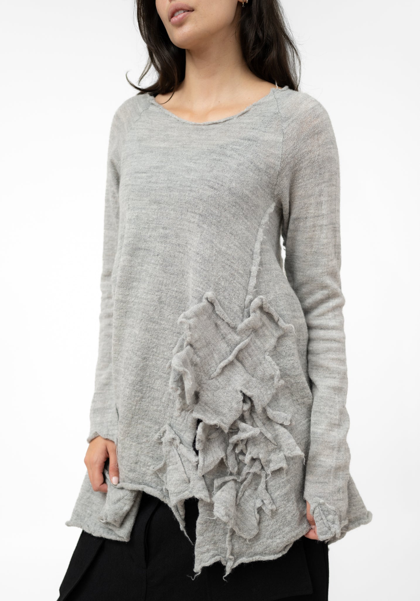 The Distressed Patch Detail Knit Wool Pullover from Germany-based Rundholz Black Label features a slit at one side with distressed patches for an effortlessly artful effect. Made for those drawn to unconventional, expressive clothing, it brings subtle drama and character to everyday outfits. Perfect for layering over fitted tops or pairing with wide-leg pants and skirts, to create a distinctive look.