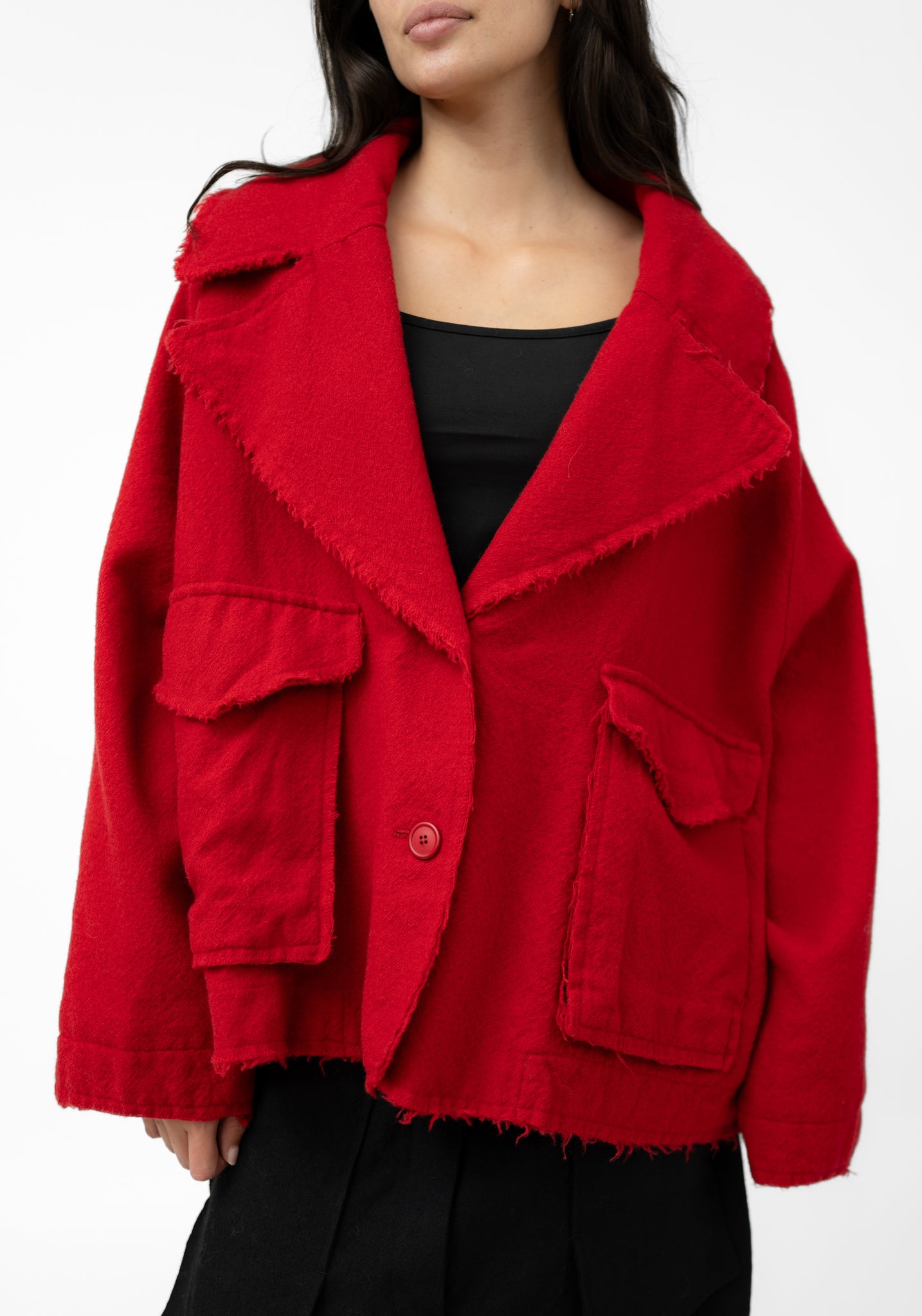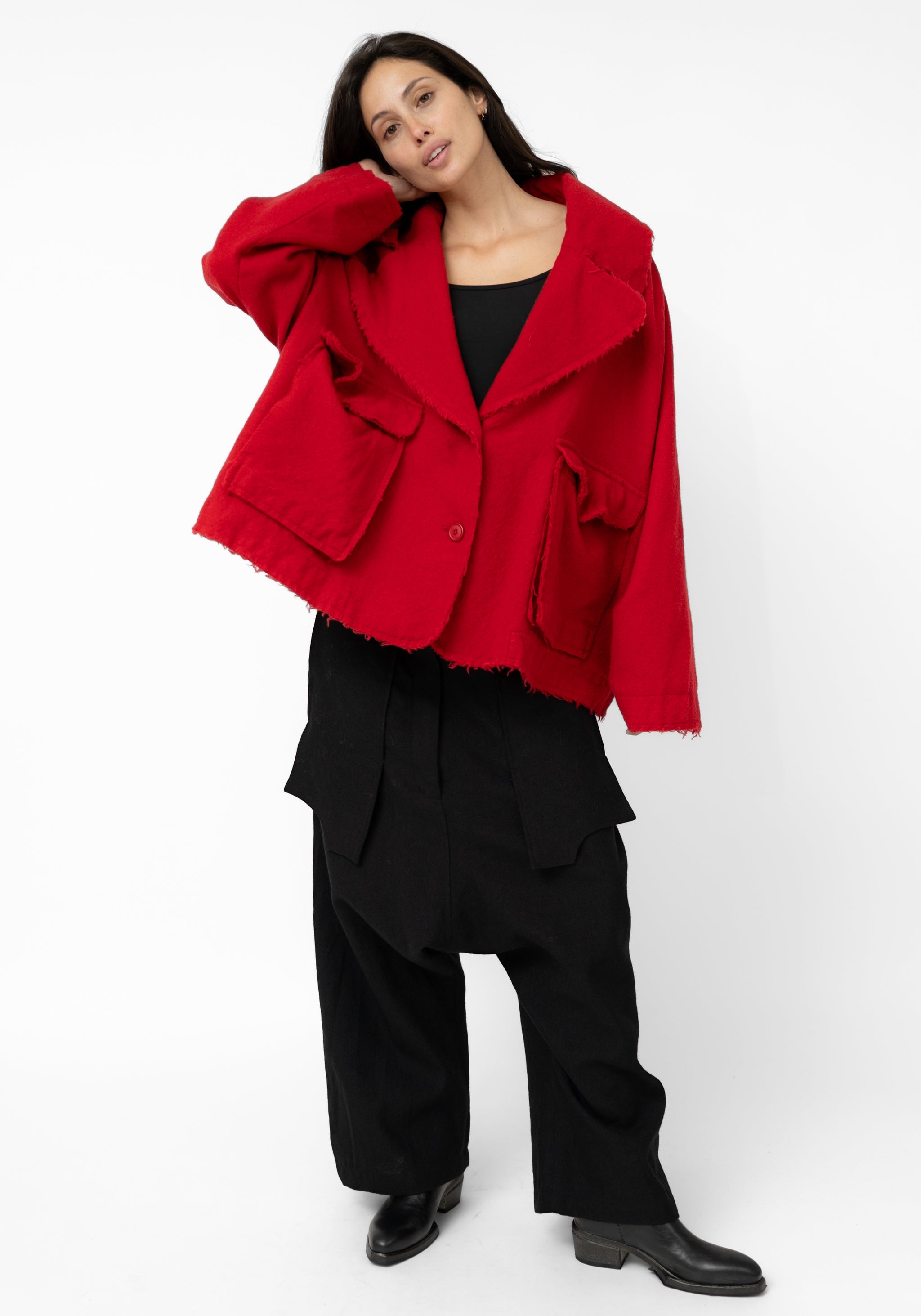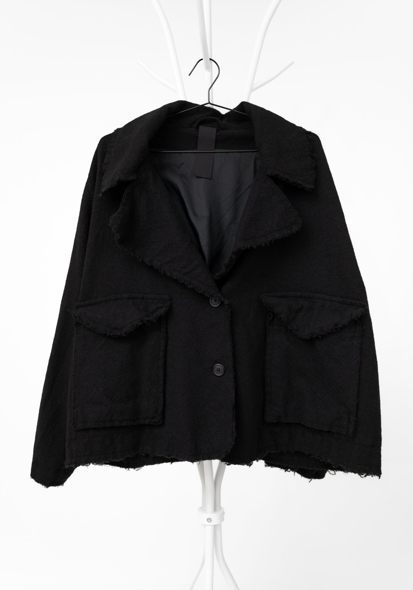 The Oversized Drop Shoulder Wool Blend Jacket from Germany-based Rundholz captures the brand’s raw, experimental spirit with its exaggerated proportions and frayed detailing. Its relaxed shape and wide collar bring a sense of ease while still holding a bold presence. A versatile outer layer, it works just as well thrown over casual separates as it does paired with more structured silhouettes.