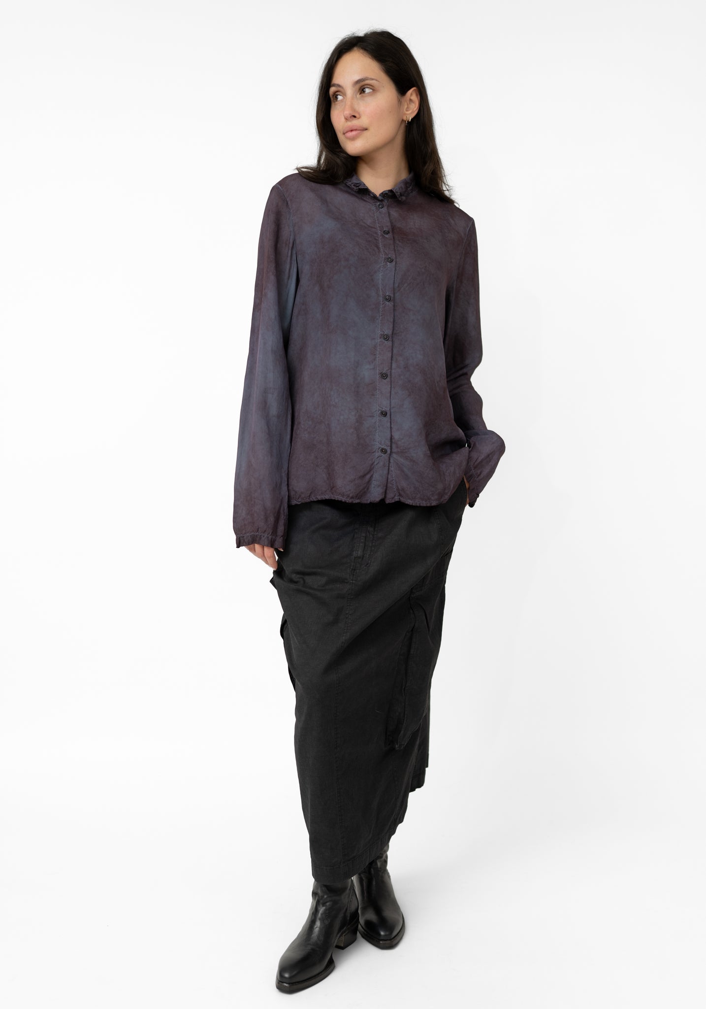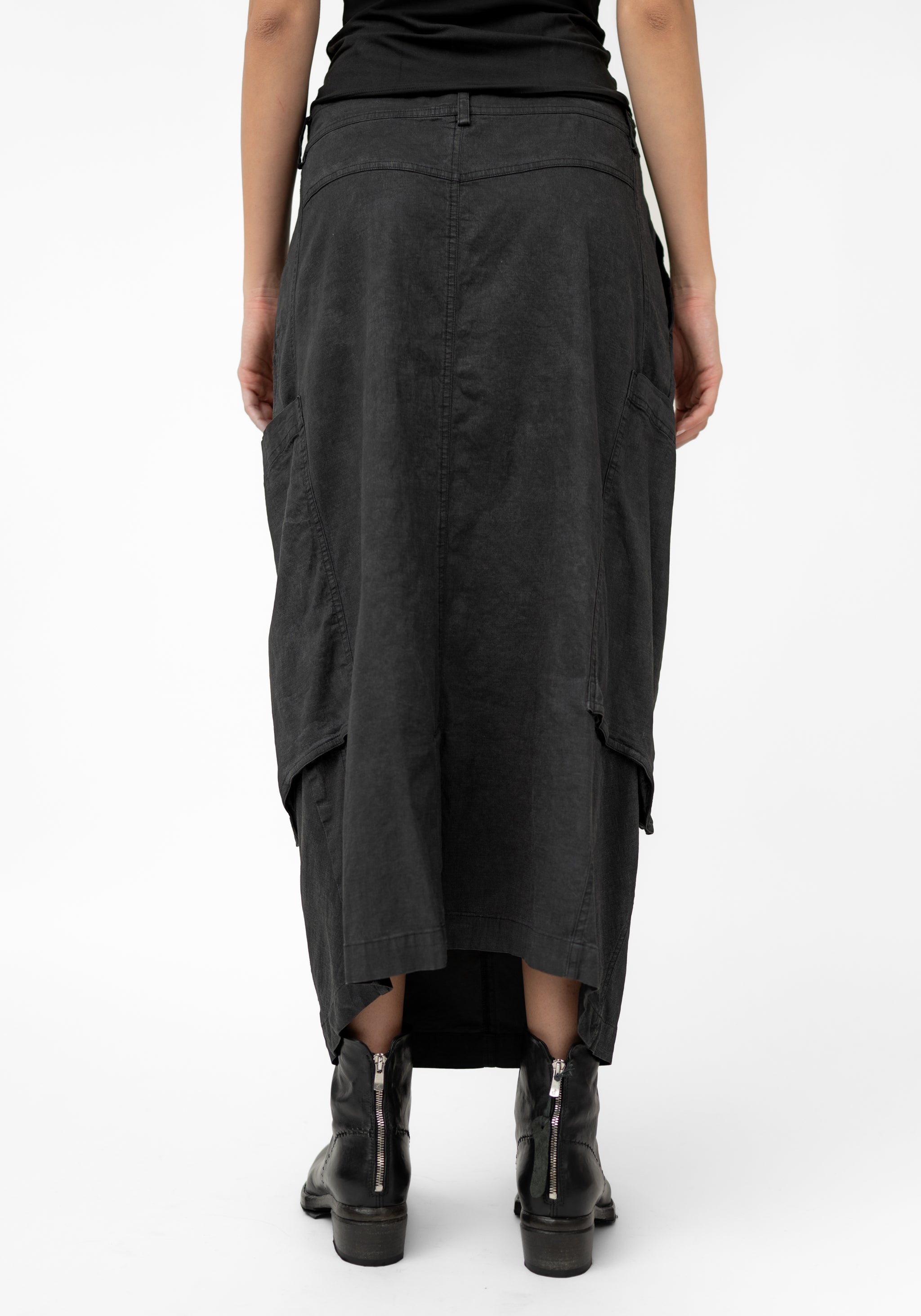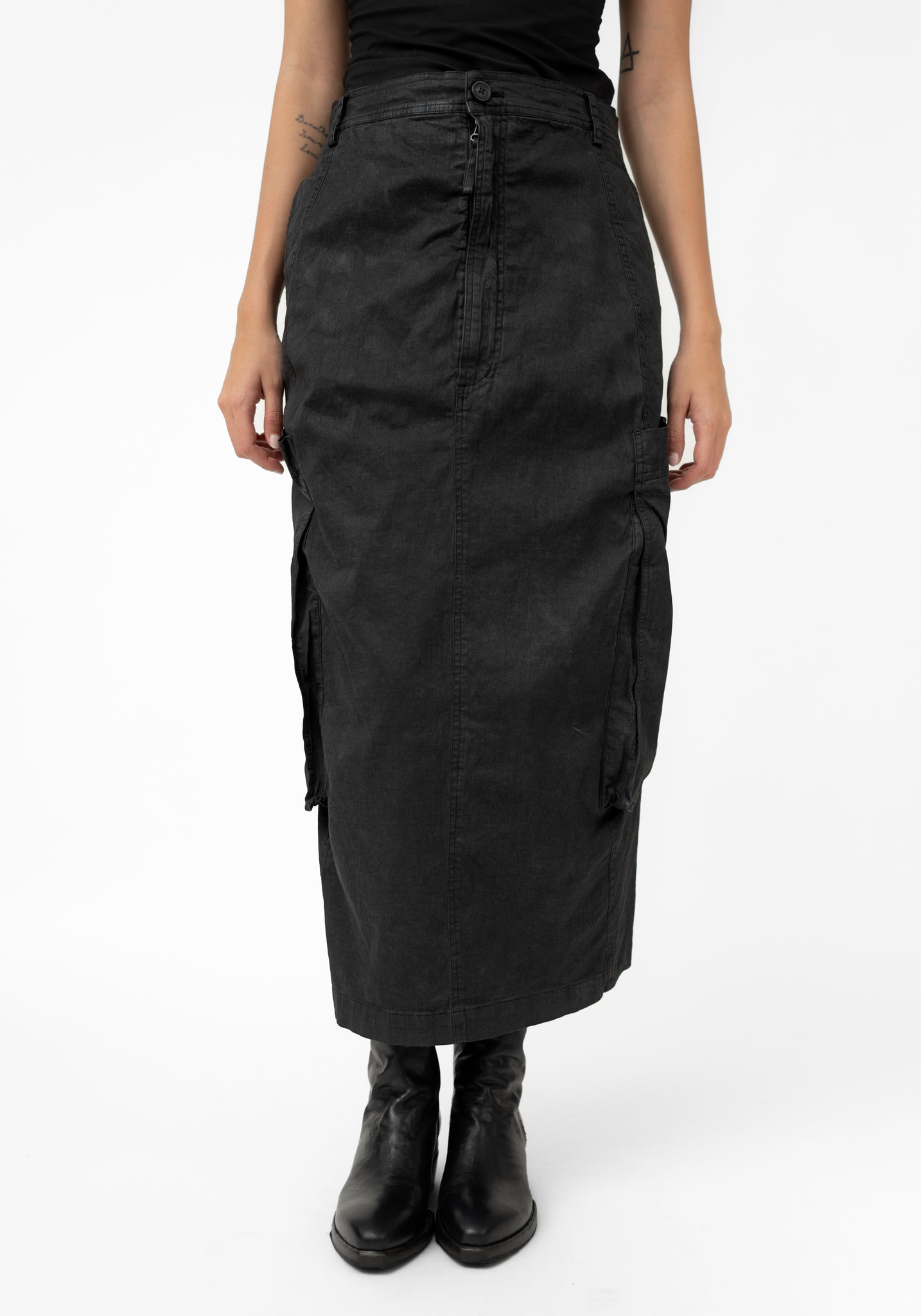 The Coated Denim Pencil Skirt from Germany-based Rundholz features over dyed gloss details and large patch pockets for a bold, contemporary twist on a classic silhouette. Crafted for those drawn to distinctive, expressive clothing, it adds edge and character to any outfit. Pair with fitted tops or layered jackets to balance the skirt’s sleek shape and highlight its unique finish.