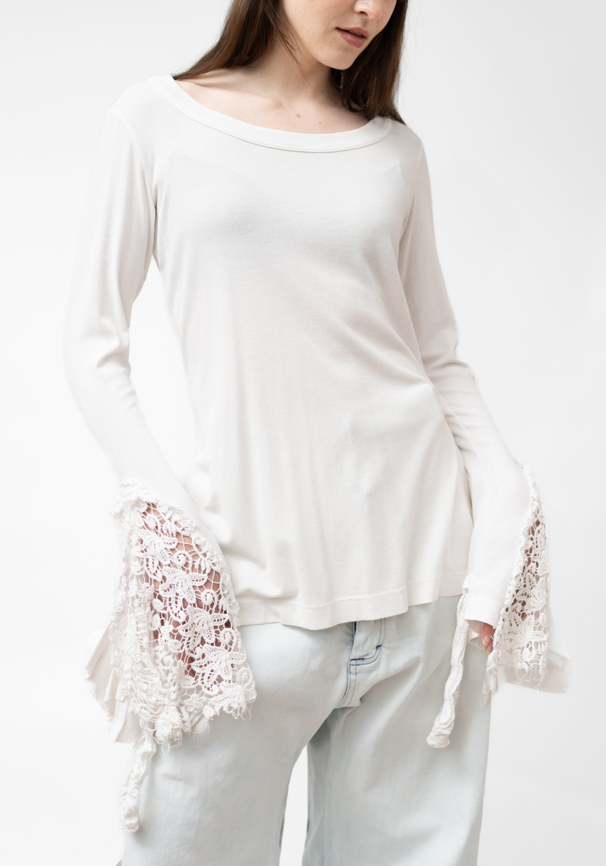 Lace Cuff Detail Long Sleeve T-Shirt