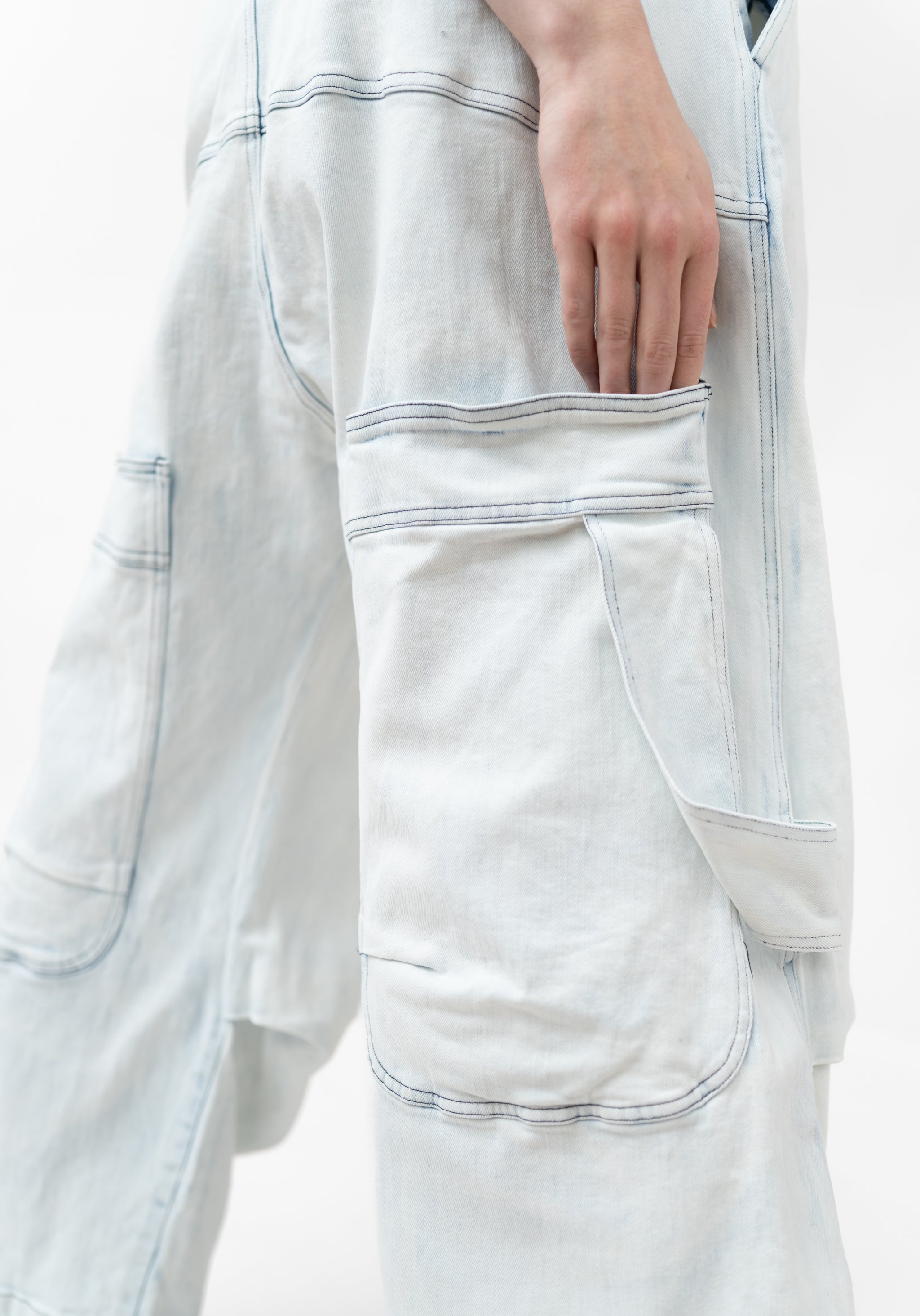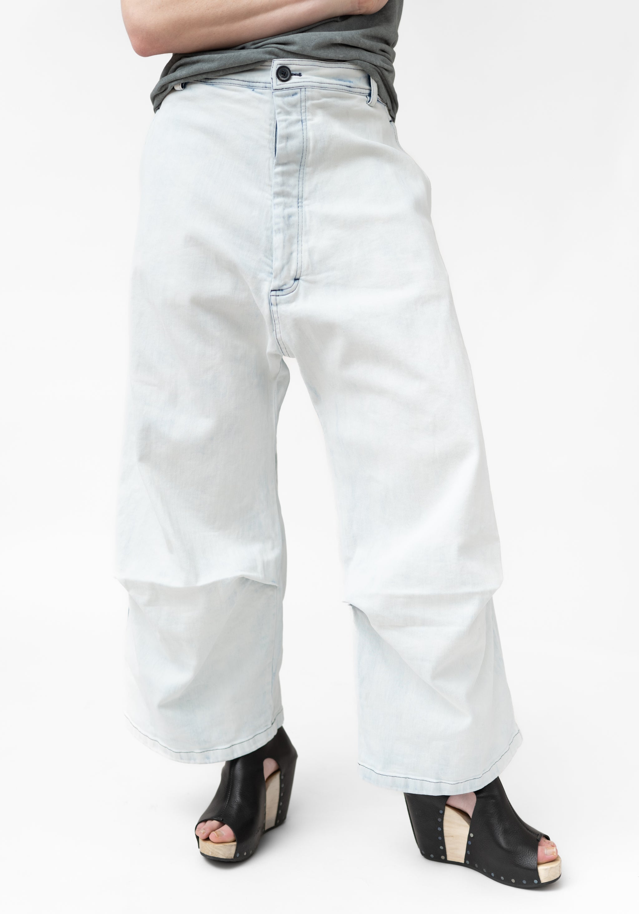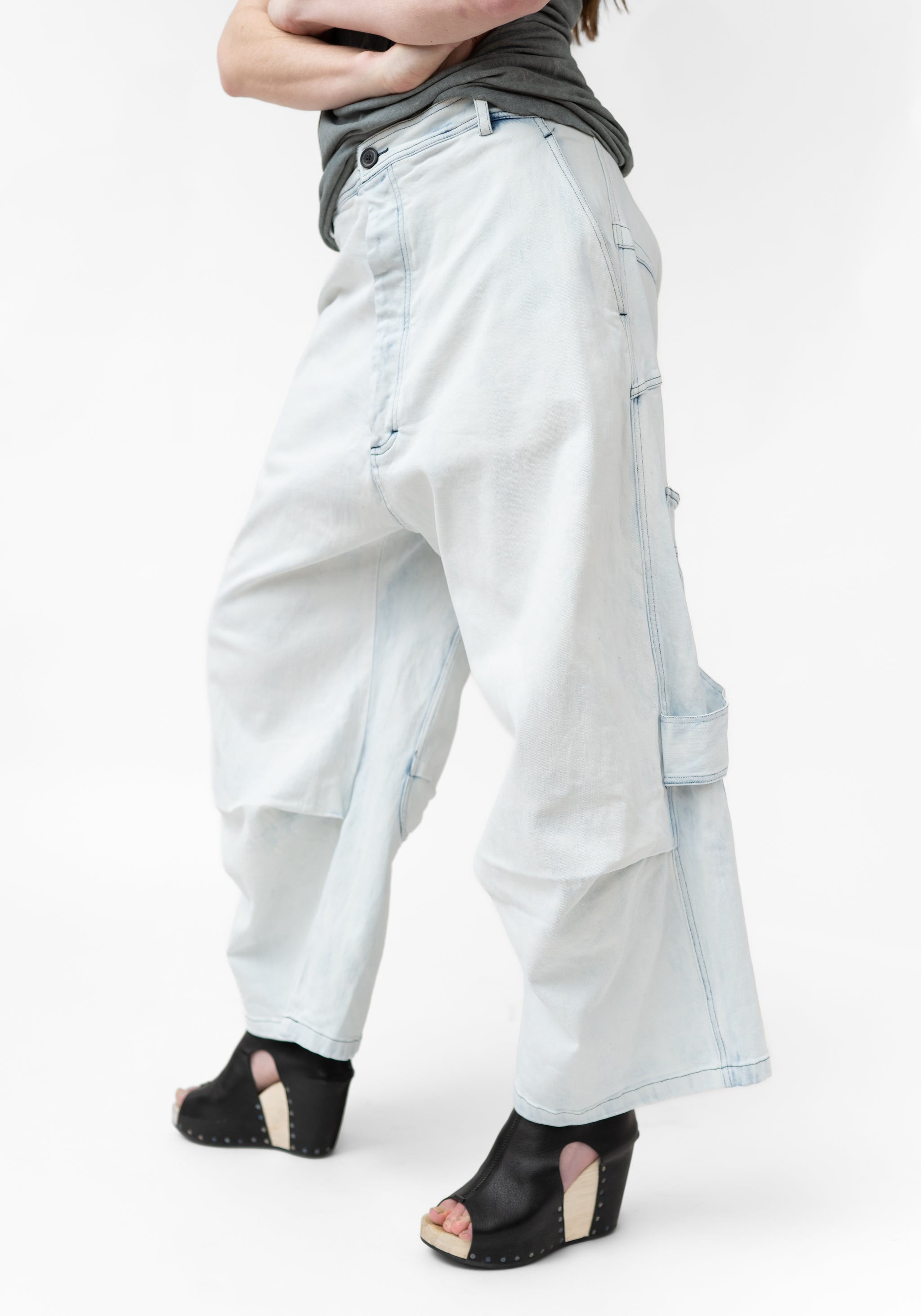 The Paneled Wide Leg Drop Seat Denim Pants from Germany-based Rundholz feature a relaxed, wide-leg silhouette with patch pockets and pleat detailing. Designed for those who appreciate elevated fashion, wear them with an oversized top and accessories to accentuate the shape of the pants.