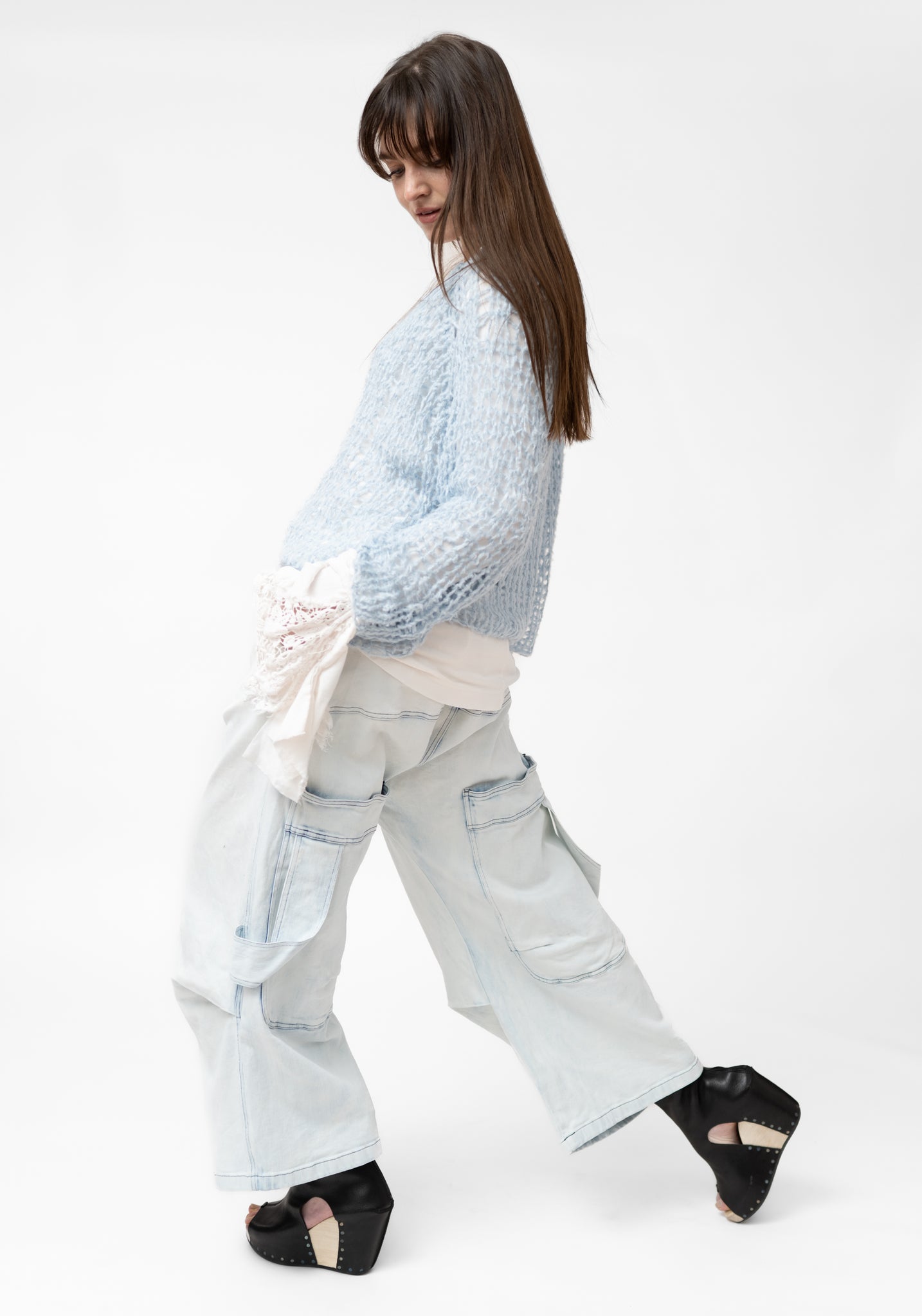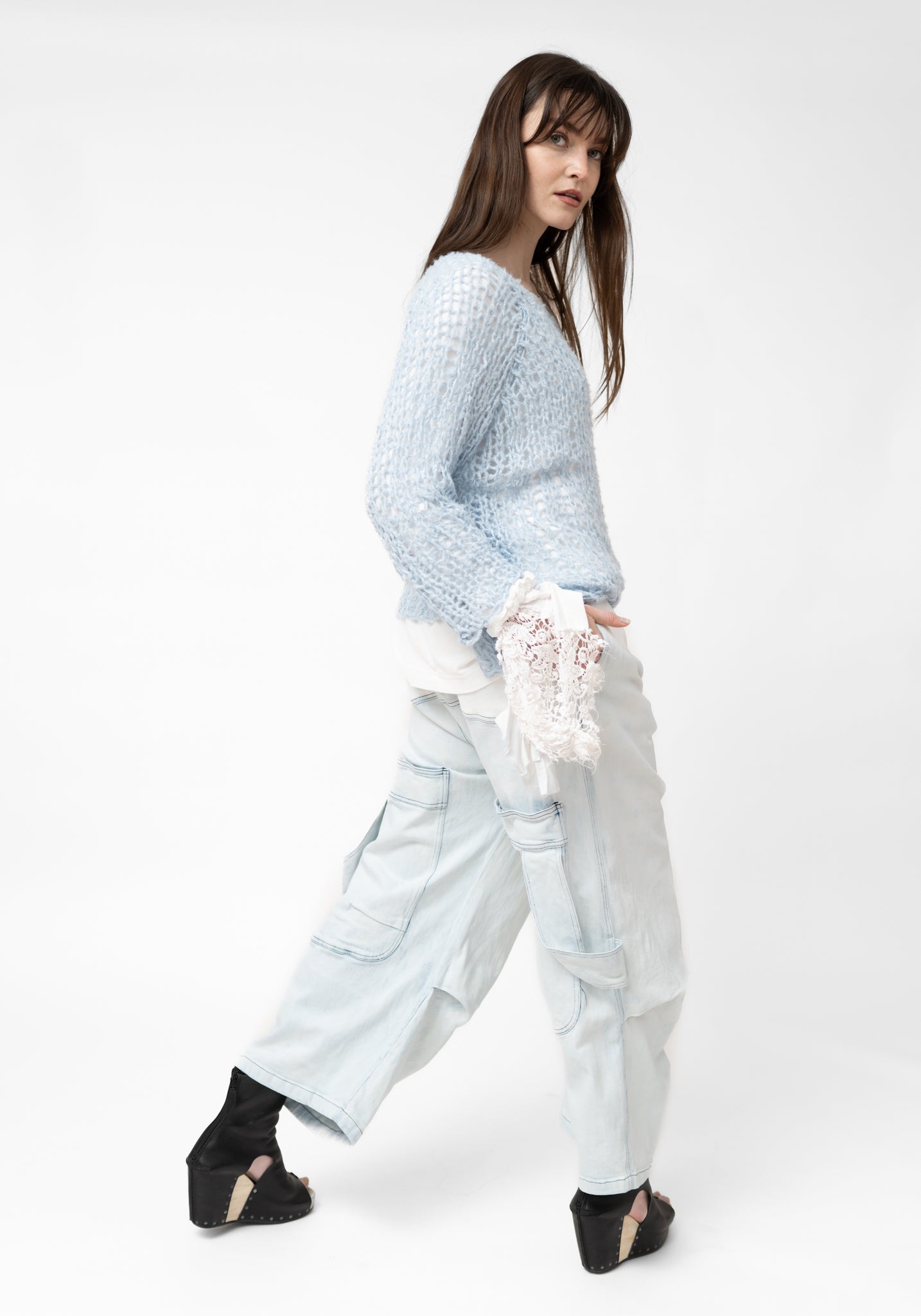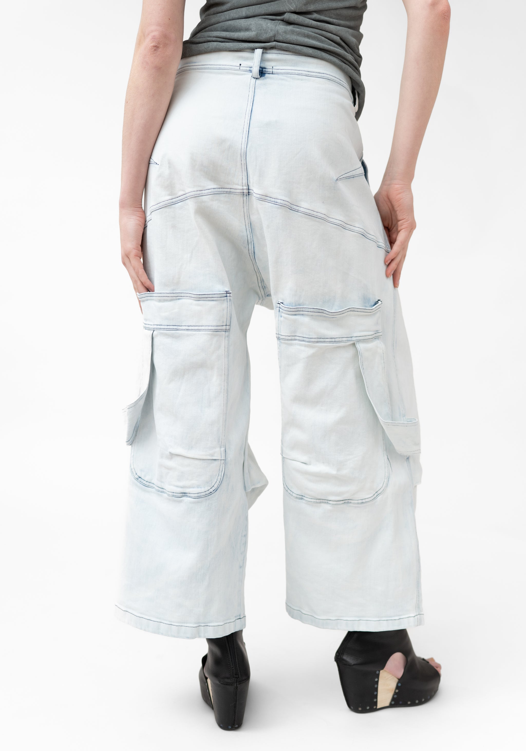 The Paneled Wide Leg Drop Seat Denim Pants from Germany-based Rundholz feature a relaxed, wide-leg silhouette with patch pockets and pleat detailing. Designed for those who appreciate elevated fashion, wear them with an oversized top and accessories to accentuate the shape of the pants.