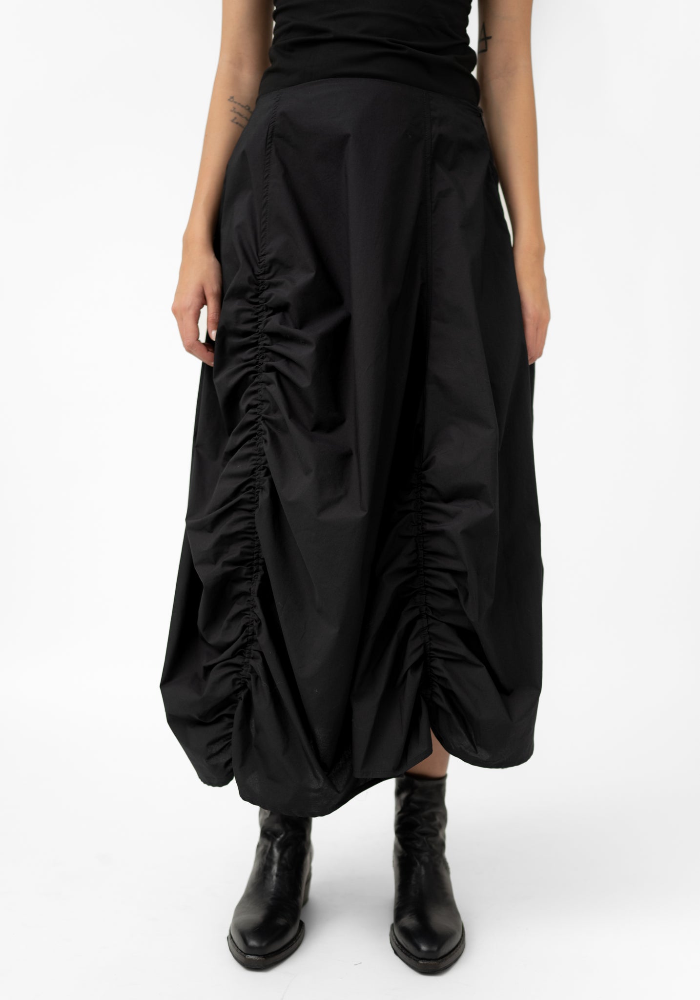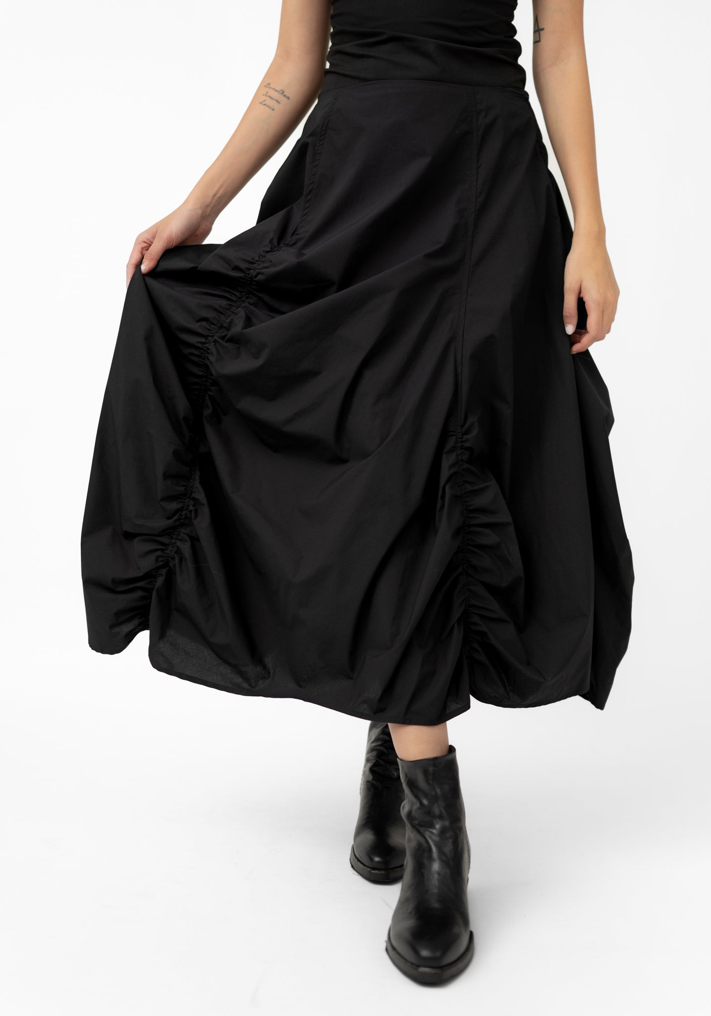 The Ruche Detail Bubble Maxi Skirt from Germany-based Rundholz features a balloon silhouette with asymmetrical ruching for sculptural texture and movement. Made for those who embrace avant-garde style, it brings bold shape and distinctive dimension to elevated evenings out or everyday wear. Layer it over a tulle skirt to add volume and highlight the ruched detailing.