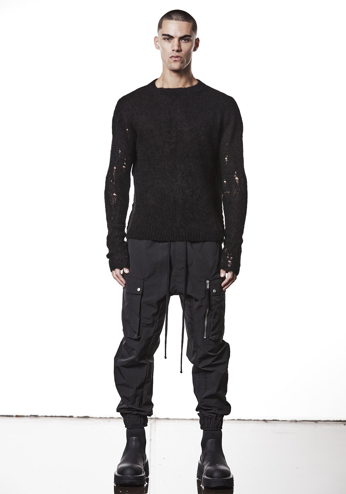 The Distressed Details Alpaca Blend Pullover from Germany-based thom/krom is made for those who favor relaxed, deconstructed silhouettes with subtle edge. Ribbed trims, distressed sleeves, and back seam detailing add texture and interest. Ideal for city outings or elevated evenings, pair with fitted bottoms and boots to showcase its sculptural, lived-in aesthetic.
