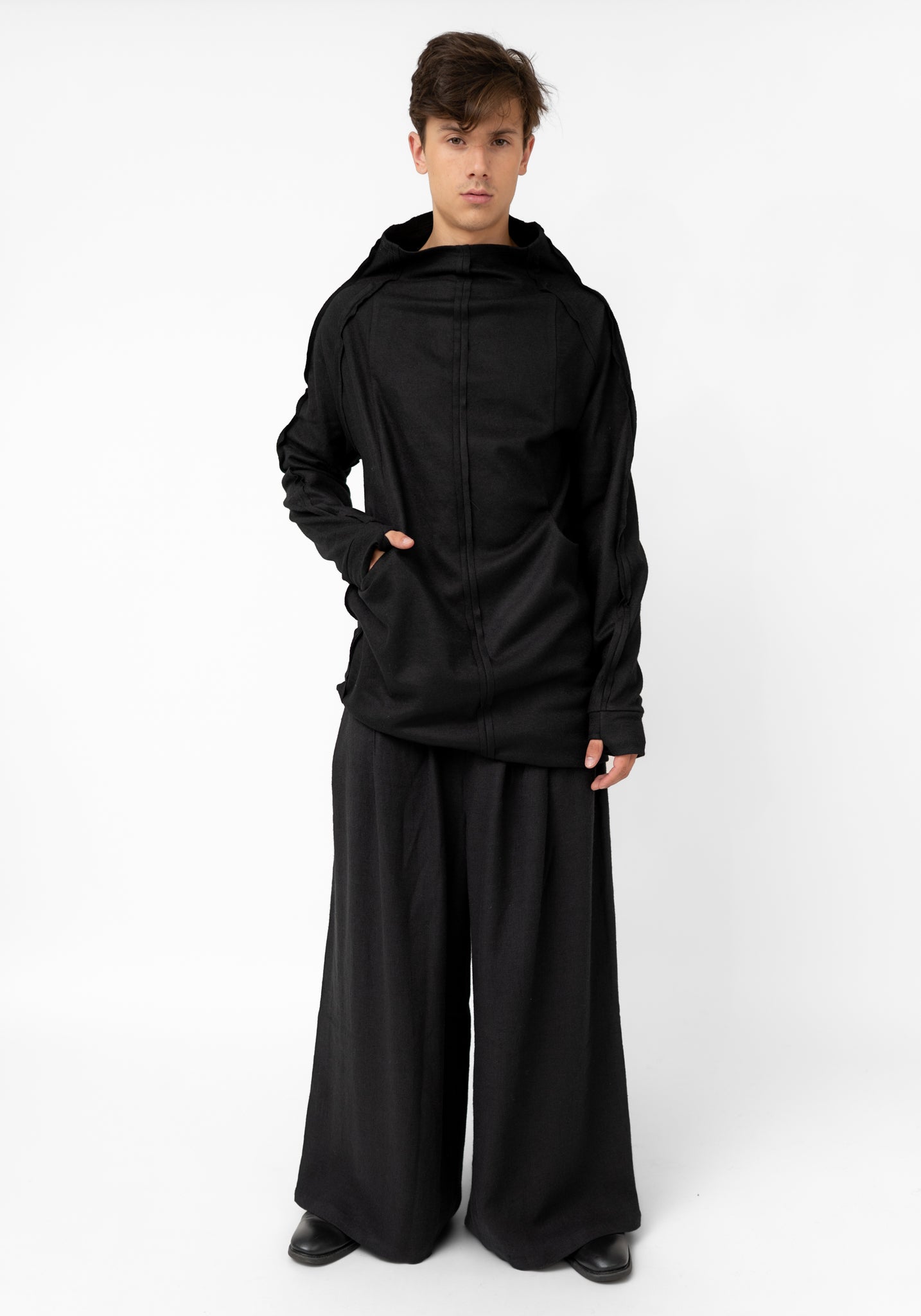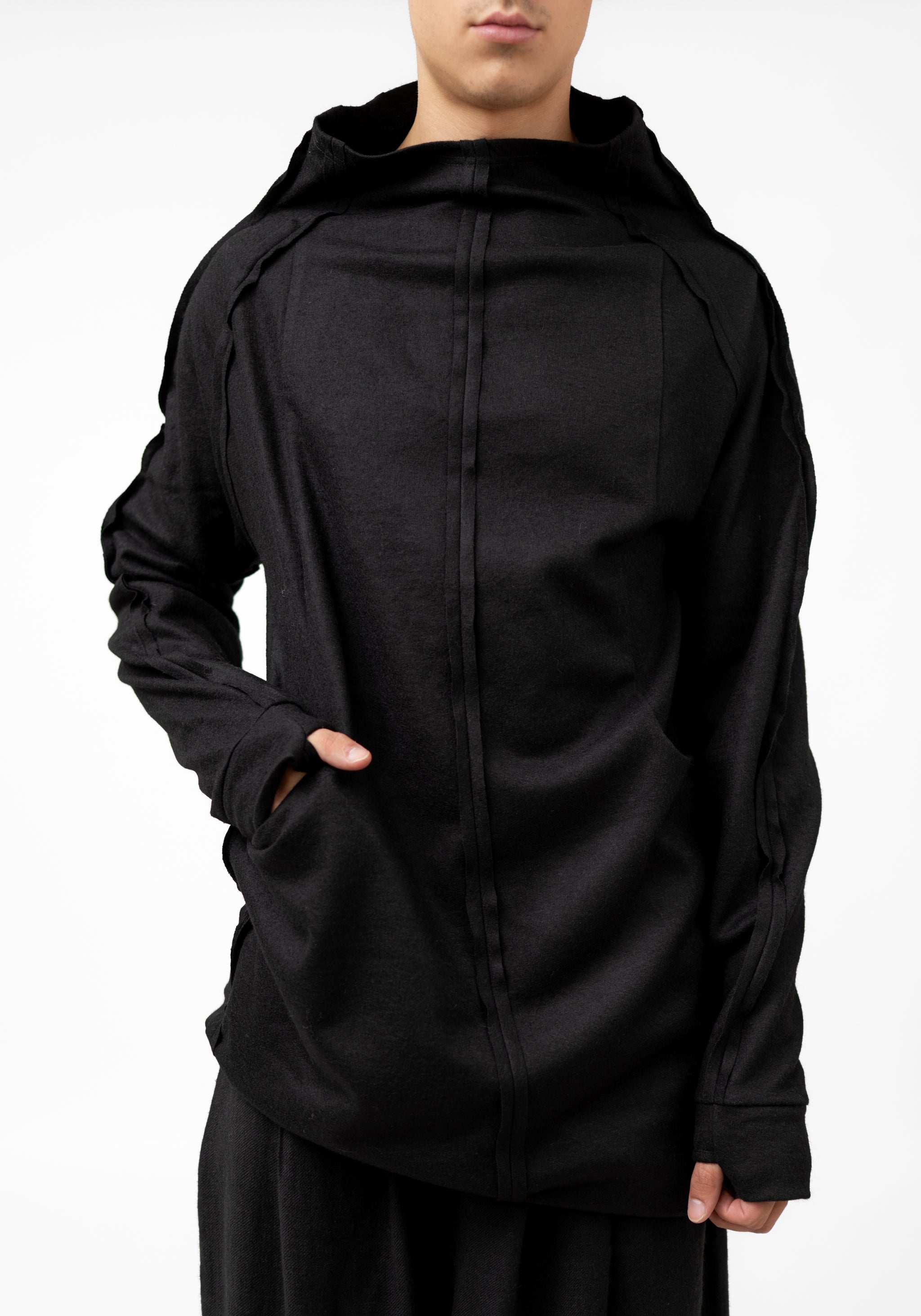 The Isao High Neck Seam Detail Wool Pullover from Hong Kong-based voidstudio is made for those who appreciate sculptural, refined silhouettes with effortless elegance. Paneled construction and external seams create architectural interest, while the high neck adds structure. Perfect for city outings or elevated evening affairs, pair with wide-leg pants to showcase its thoughtful craftsmanship.