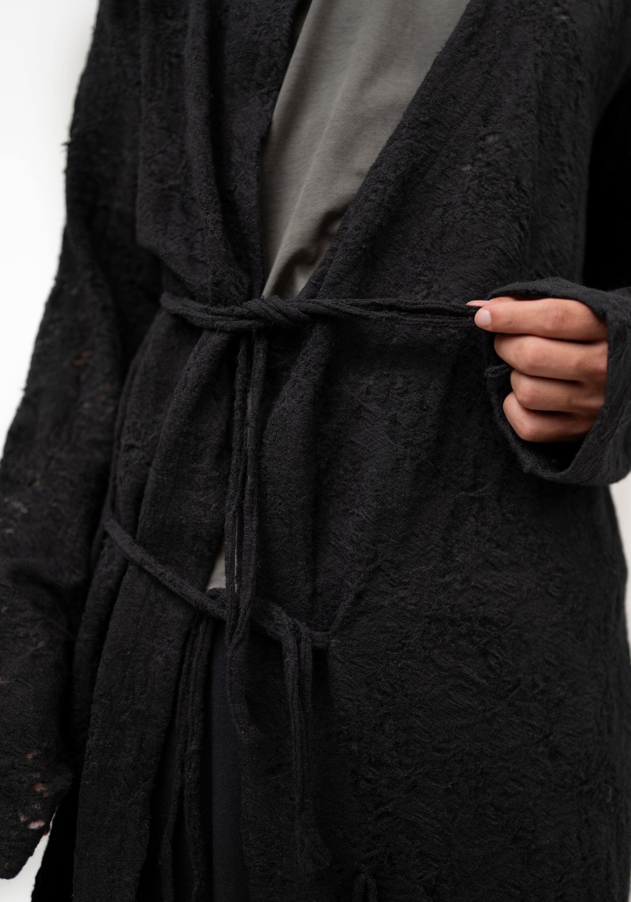 The Issei Wool Blend Tie Front Cardigan from Hong Kong-based voidstudio is made for those who embrace sculptural, avant-garde silhouettes with effortless ease. Its asymmetric neckline and layered textures create subtle dimension and movement. Perfect for city outings or elevated evening affairs, pair it over wide-leg bottoms with a fitted top to highlight its asymmetric hem and refined craftsmanship.