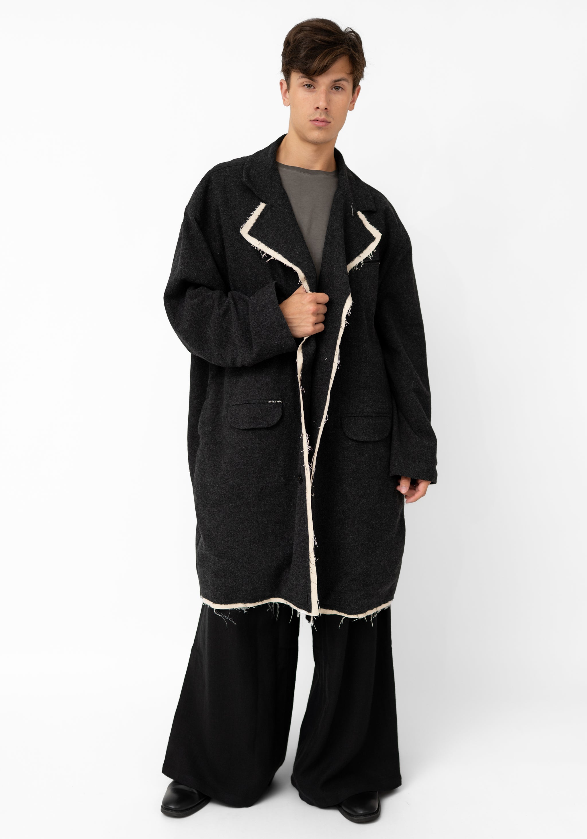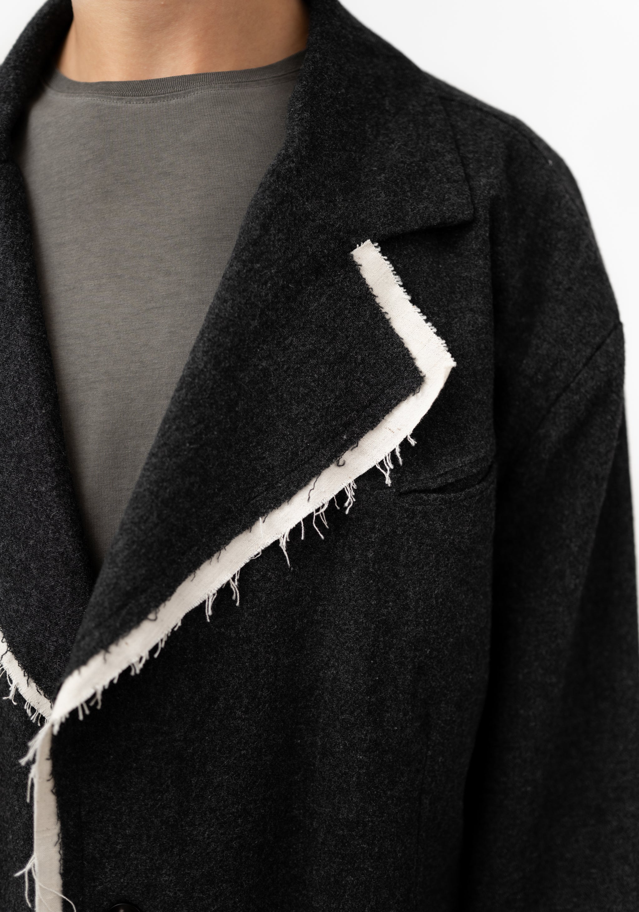 The Kiran Oversized Distressed Details Wool Jacket from Hong Kong-based voidstudio is made for those who embrace sculptural, textured silhouettes with subtle drama. Notched collar, contrasting stitching, and multiple pockets create layered detail, while buttoned cuffs and a back kick slit add structure. Ideal for elevated city outings, gallery visits, or evening affairs, style with wide-leg pants and layered tops to highlight its crafted lines and dramatic presence.