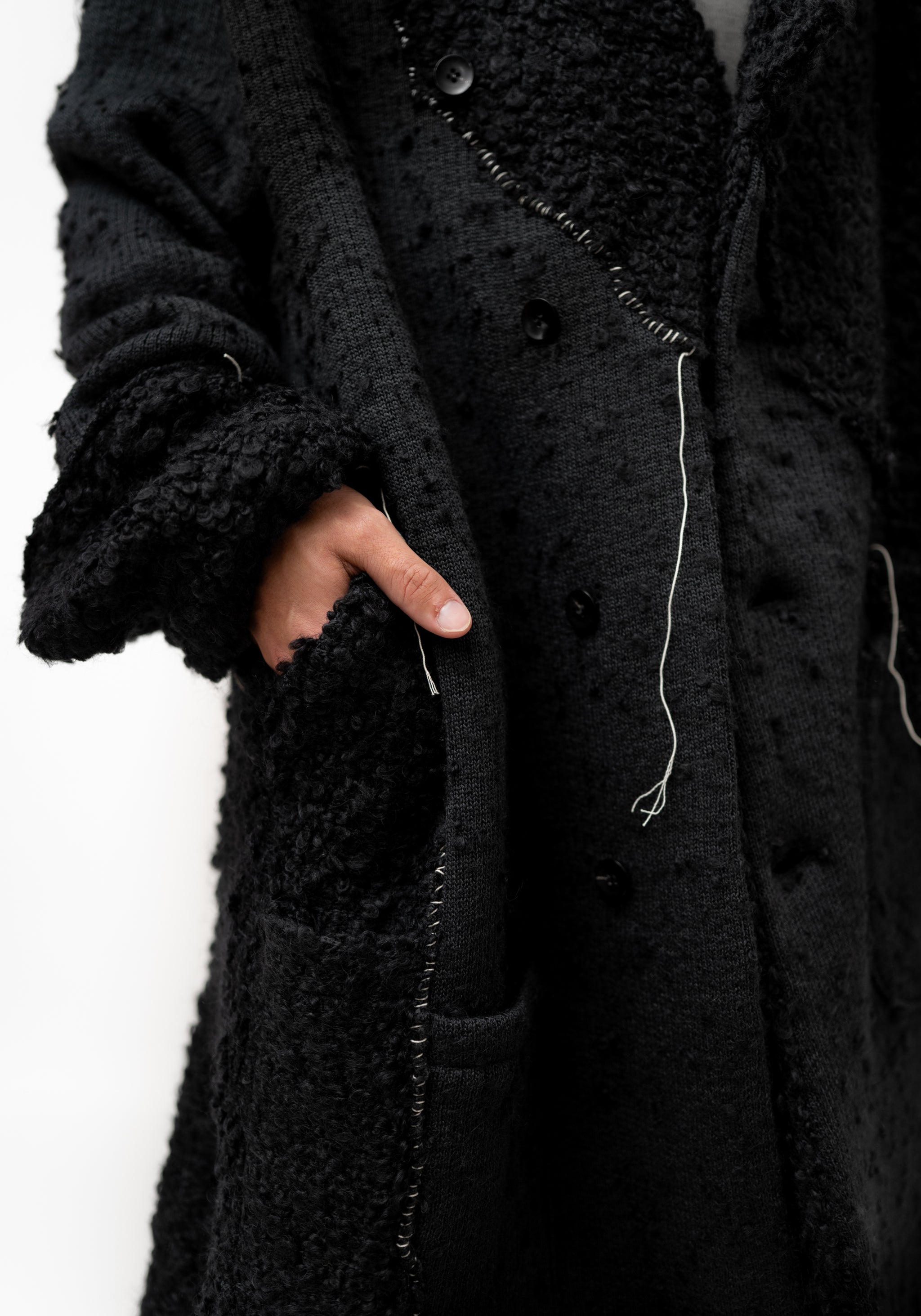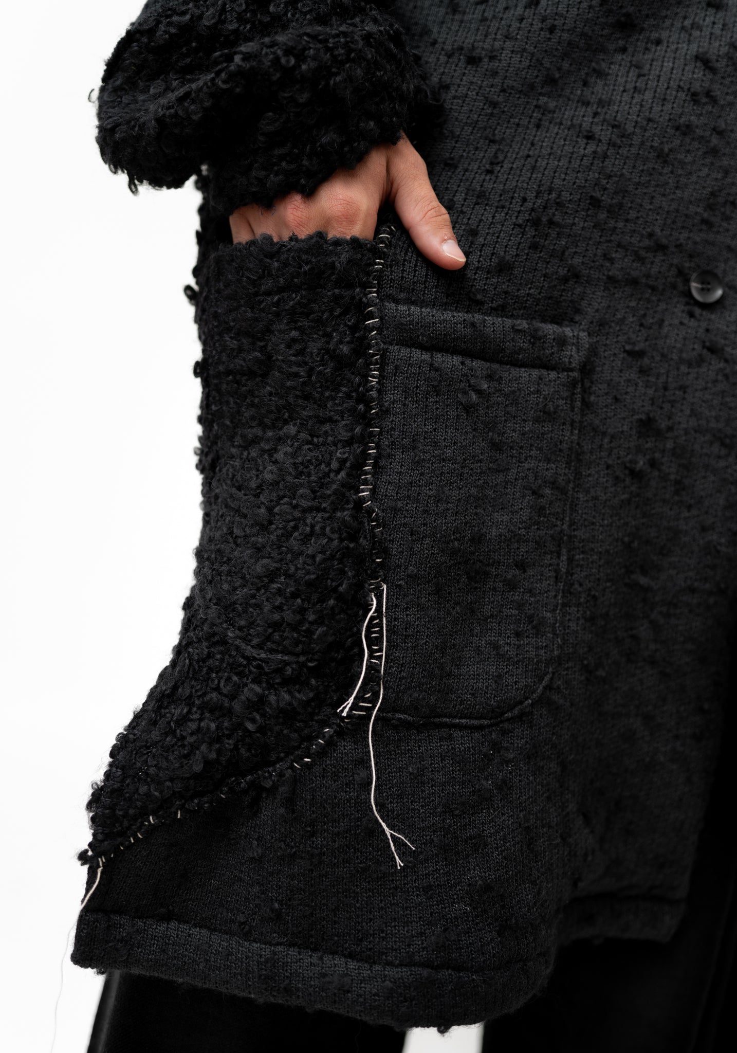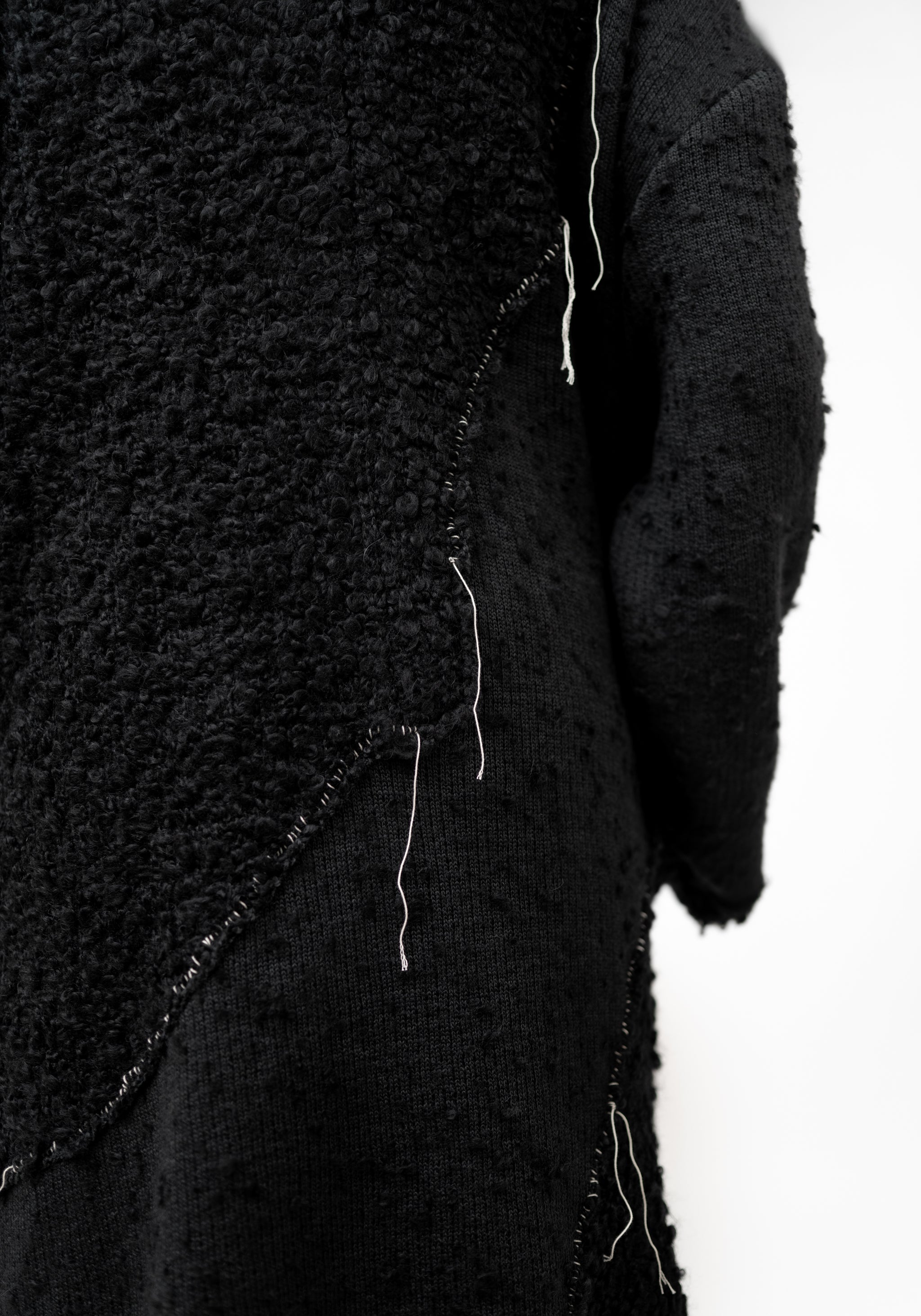The Shiro Textured Wool Blend Maxi Cardigan from Hong Kong-based voidstudio is made for those who appreciate sculptural, textured silhouettes with artistic flair. Knit panels, contrast stitching, and side slits create fluid movement and layered dimension. Ideal for city outings or creative gatherings, layer over a fitted top and wide-leg pants to highlight its architectural lines and refined craftsmanship.